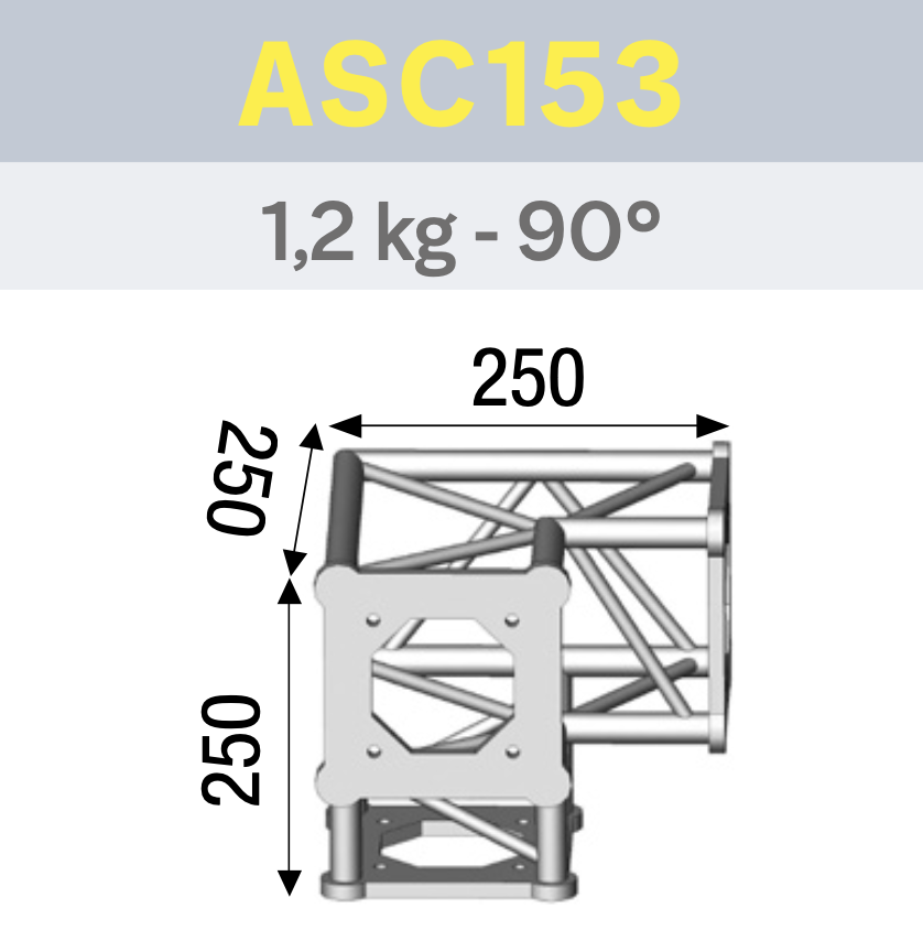 ANGLE 3D PIED 90° SECTION 150 ALU CARRÉ. (Ref : AL ASC 153)