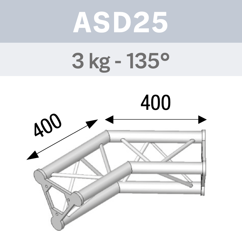 ANGLE ALU 250 TRIANGULAIRE 2 DÉPARTS 135°. (Ref : AL ASD 25)