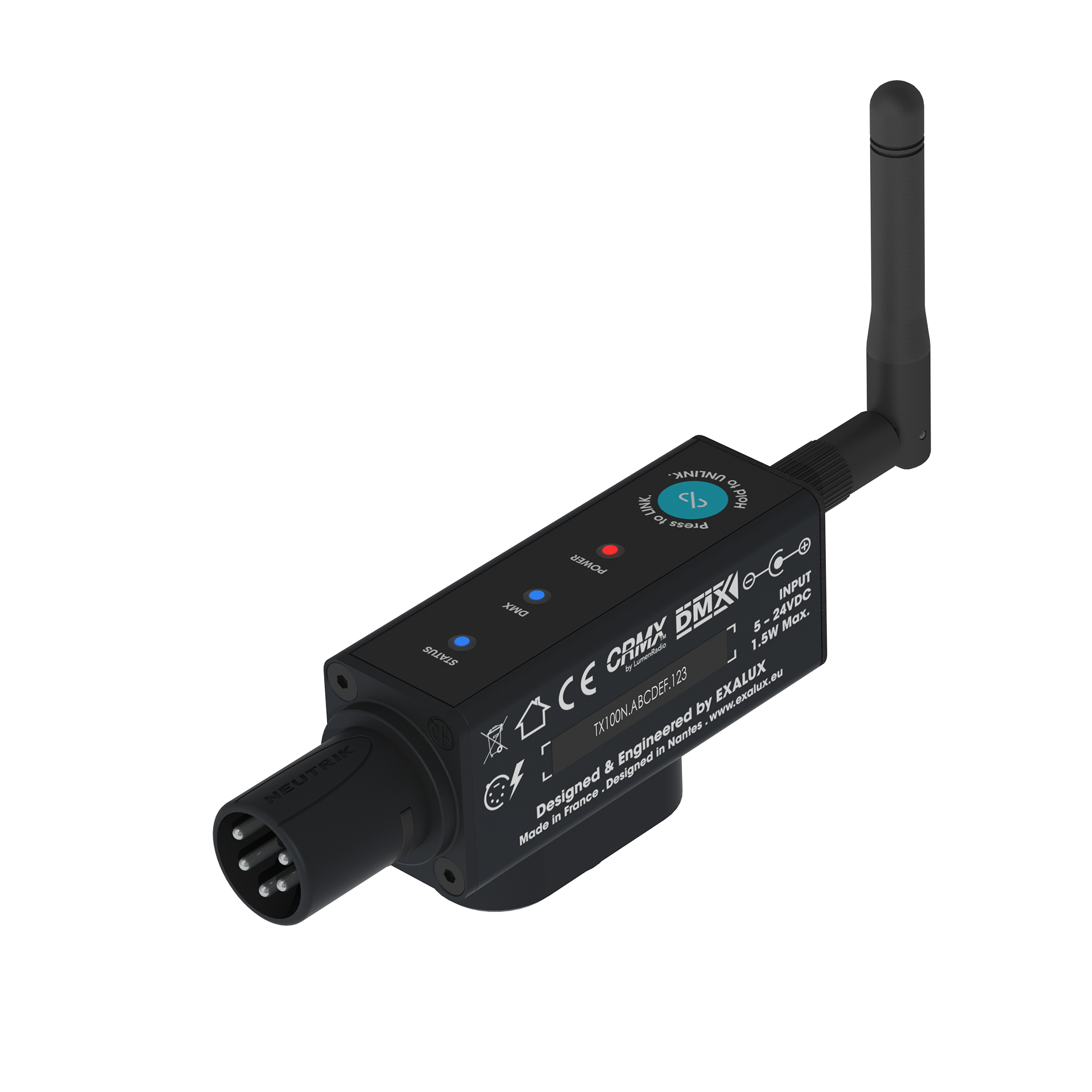 CONNECT TX100N basic kit emetteur CRMX DMX 512. 1 univers 5-24VDC / alimentation pod . (réf : EX CNT.001.005).