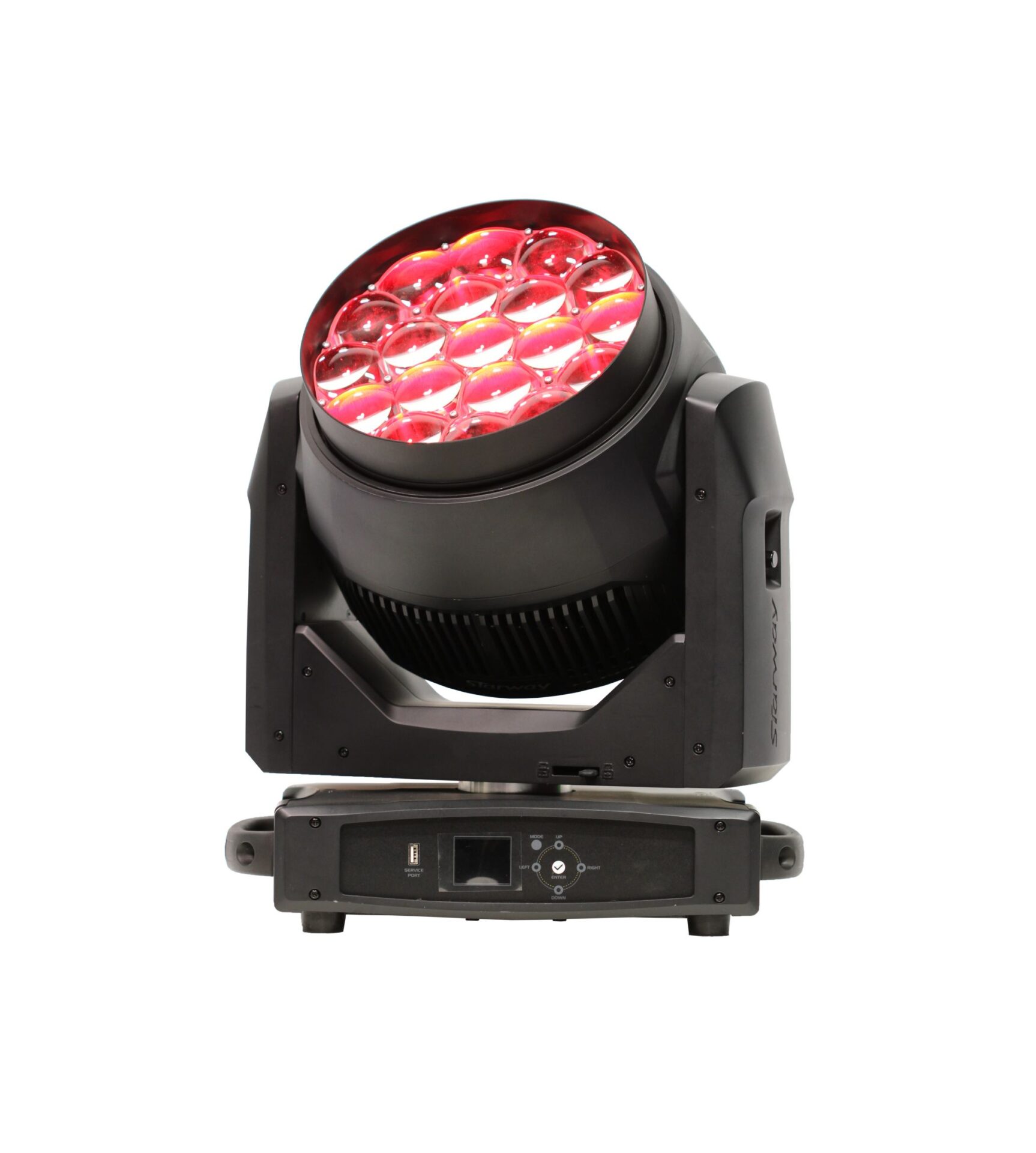 La lyre wash DAYTONA WET est dotée de 19 LEDs RGBW de 60W, allie rapidité et puissance, offrant un flux lumineux de 2 1 1 00 l umens. A vec un z oom a justable d e 4 ,3° à 5 8°, 3 modes de refroidissement et une fonction Flicker Free, elle offre une performance exceptionnelle. Les 19 LEDs peuvent être contrôlées individuellement (pixel to pixel), créant des motifs grâce aux programmes internes ou via une gestion externe en DMX, Art-Net ou Kling-Net. Daytona WET propose également un mode halogène simulant l'effet d'une lampe à filament.
