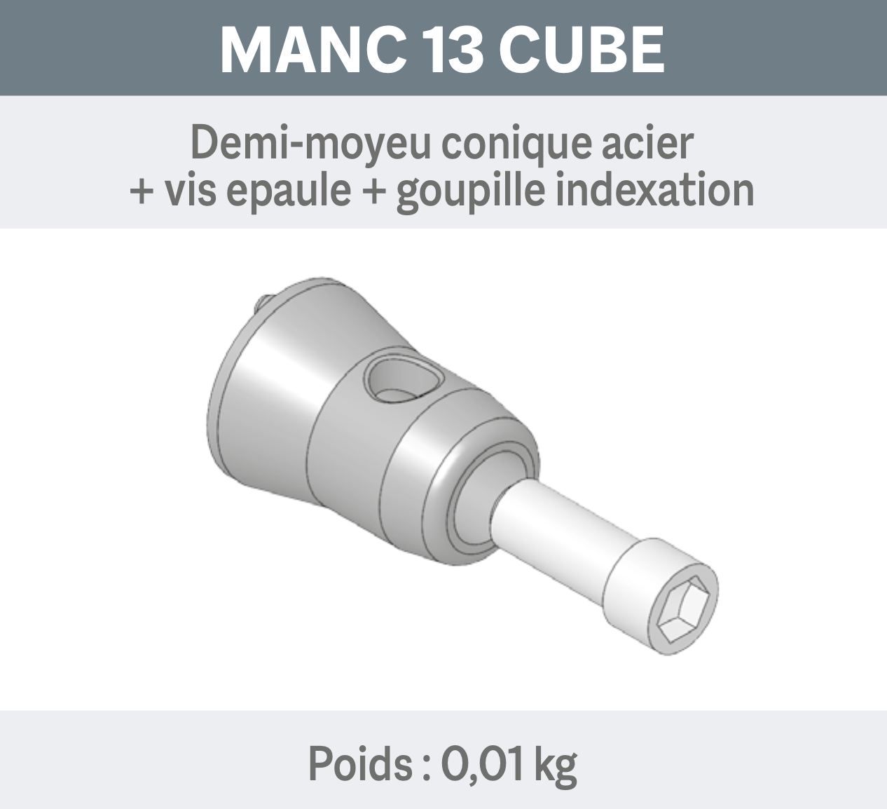 DEMI-MOYEU ACIER + VIS EPAULE + GOUPILLE INDEXATION. (Ref : AL MANC 13 CUBE)