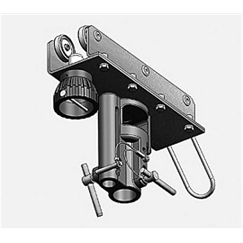 One side of the carriage can be removed to attach or detach the carriage to/from the IFF Rail 80 or IPE80 beam. Universal head with 1-1/8” and 5/8” female and 5/8” male attachment.
