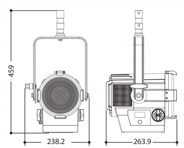 Les EclFresnel Jr sont des Fresnel LED amenés à remplacer des projecteurs traditionnels de 650 W. L’éclairement est puissant et cohérent sur toute la plage de zoom. Le contrôle s’effectue en DMX RDM ou localement. Très silencieux, ils seront parfaits pour les théâtres, les événementiels ou la TV, ou pour les tournages en extérieur, grâce à leur utilisation possible sur batterie externe (non fournie).