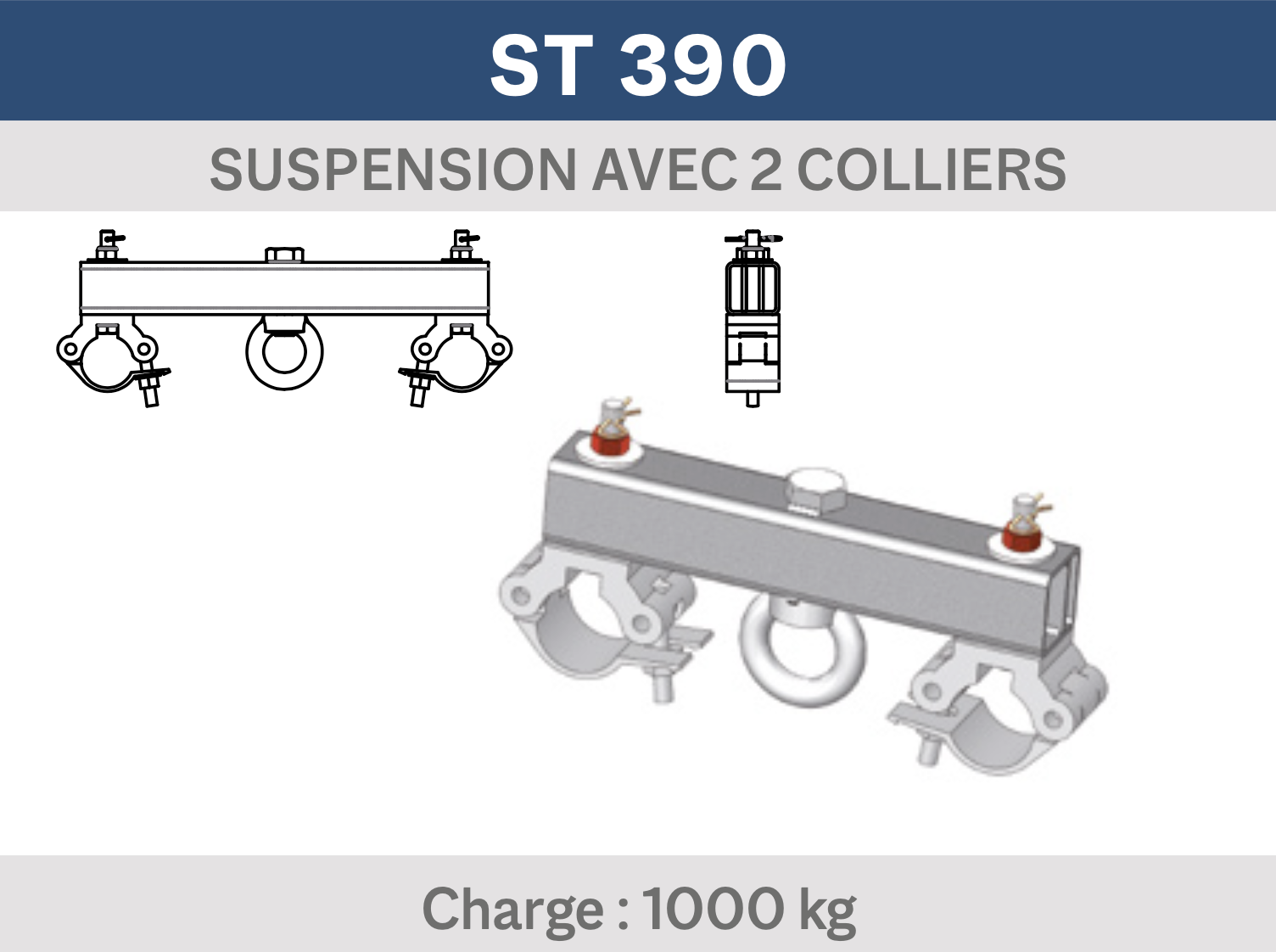 SUSPENSION AVEC 2 COLLIERS CHARGE 1000 KG POUR STRUCTURE 390. (Ref : AL ST 390)