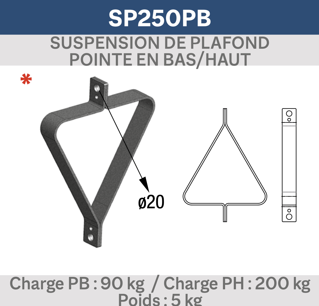 SUSPENSION DE PLAFOND TRI 250 pointe en bas/hau