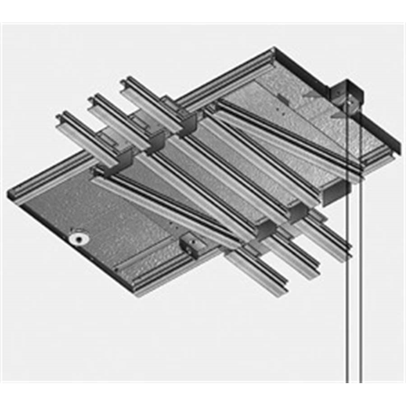 Switch for triple cyclorama Rail Type 50 system. To connect parking rails or feeding rails to the main curtain rail system. Closed loop curtain systems require switches for inserting or removing curtains for maintenance.